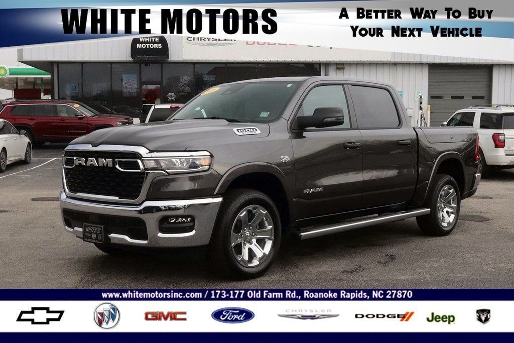 Equipped with Big Horn Level 2 Equipment Group (115V Auxiliary Power Outlet, 115V Auxiliary Rear Power Outlet, 12" Touchscreen Display, 3 Rear Seat Head Restraints, 4 Way Front Headrests, 400W Inverter, 4G LTE Wi-Fi Hot Spot, Apple CarPlay, Auto Power-Folding Mirrors, Auto-Dimming Exterior Driver Mirror, Auto-Dimming Rear-View Mirror, Black Exterior Mirrors, Black Premium Power Mirrors, Body Color Fender Flares, Bucket Seats, Center Console Parts Module, Cluster 7.0" TFT Color Display, Configurable Drive Mode, Connectivity - US/Canada, Convex Wide-Angle Exterior Mirror Insert, Deluxe Cloth Bucket Seats, Disassociated Touchscreen Display, Exterior Mirrors Courtesy Lamps, Front Seat Back Map Pockets, Full Length Floor Console, Glove Box Lamp, Google Android Auto, GPS Antenna Input, GPS Navigation, HD Radio, Heated Front Seats, Heated Steering Wheel, Integrated Center Stack Radio, Leather Wrapped Steering Wheel, LED Footwell Lighting, Manual Adjust 4-Way Front Passenger Seat, Overhead LED Lamps, Power 2-Way Driver Lumbar Adjust, Power Adjust 8-Way Driver Seat, Power Adjustable Pedals, Premium Overhead Console, Rear 60/40 Folding Seat, Rear Center Armrest, Rear Power Sliding Window, Rear Window Defroster, Remote Tailgate Release, Security Alarm, SiriusXM Radio Service, Steering Wheel Mounted Audio Controls, Universal Garage Door Opener, USB Host Flip, and Wheels: 20" x 9" Aluminum Chrome Clad), Quick Order Package 27Z Big Horn, 33 Gallon Fuel Tank, 4-Wheel Disc Brakes, 48V Belt Starter Generator, 6 Speakers, ABS brakes, Air Conditioning, Alloy wheels, AM/FM radio, Anti-Spin Differential Rear Axle, Apple CarPlay/Android Auto, Auto High-beam Headlights, Brake assist, Bumpers: chrome, Cloth Bucket Seats, Cluster 12" TFT Color Display, Compass, Delay-off headlights, Driver door bin, Dual front impact airbags, Dual front side impact airbags, Electronic Stability Control, Exterior 115V AC Outlet, Front anti-roll bar, Front Bucket Seats, Front Center Armrest w/Storage, Front fog lights, Front License Plate Bracket, Front reading lights, Front wheel independent suspension, Fully automatic headlights, Heated door mirrors, Illuminated entry, Low tire pressure warning, Manual Adjust 4-Way Driver Seat, Manual Folding Exterior Mirrors, Manufacturer's Statement of Origin, MyFlexCare Service Plan, Occupant sensing airbag, Outside temperature display, Overhead airbag, Overhead console, Panic alarm, ParkView Rear Back-Up Camera, Passenger door bin, Passenger vanity mirror, Power door mirrors, Power steering, Power windows, Radio data system, RAM Grille Badge - Chrome, RamBox Cargo Management System, Rear anti-roll bar, Rear step bumper, Rear Wheelhouse Liners, Remote keyless entry, Speed control, Supplier Part Tracking (J-1), Tachometer, Telescoping steering wheel, Tilt steering wheel, Traction control, Trailer Brake Control, Trip computer, Variably intermittent wipers, Voltmeter, Wheel to Wheel Side Steps, and Wheels: 18" x 8" Cast-Aluminum Painted. All offers available to qualified buyers with approved financing. Incentives may vary by zip code. Price includes any applicable rebates. Some buyers may not qualify for some incentives. Dealer reserves the right to verify pricing and has the right to refuse pricing as a result of system errors.$500 - 2026 National 2026 First Responder Bonus Cash . Exp. 01/04/2027